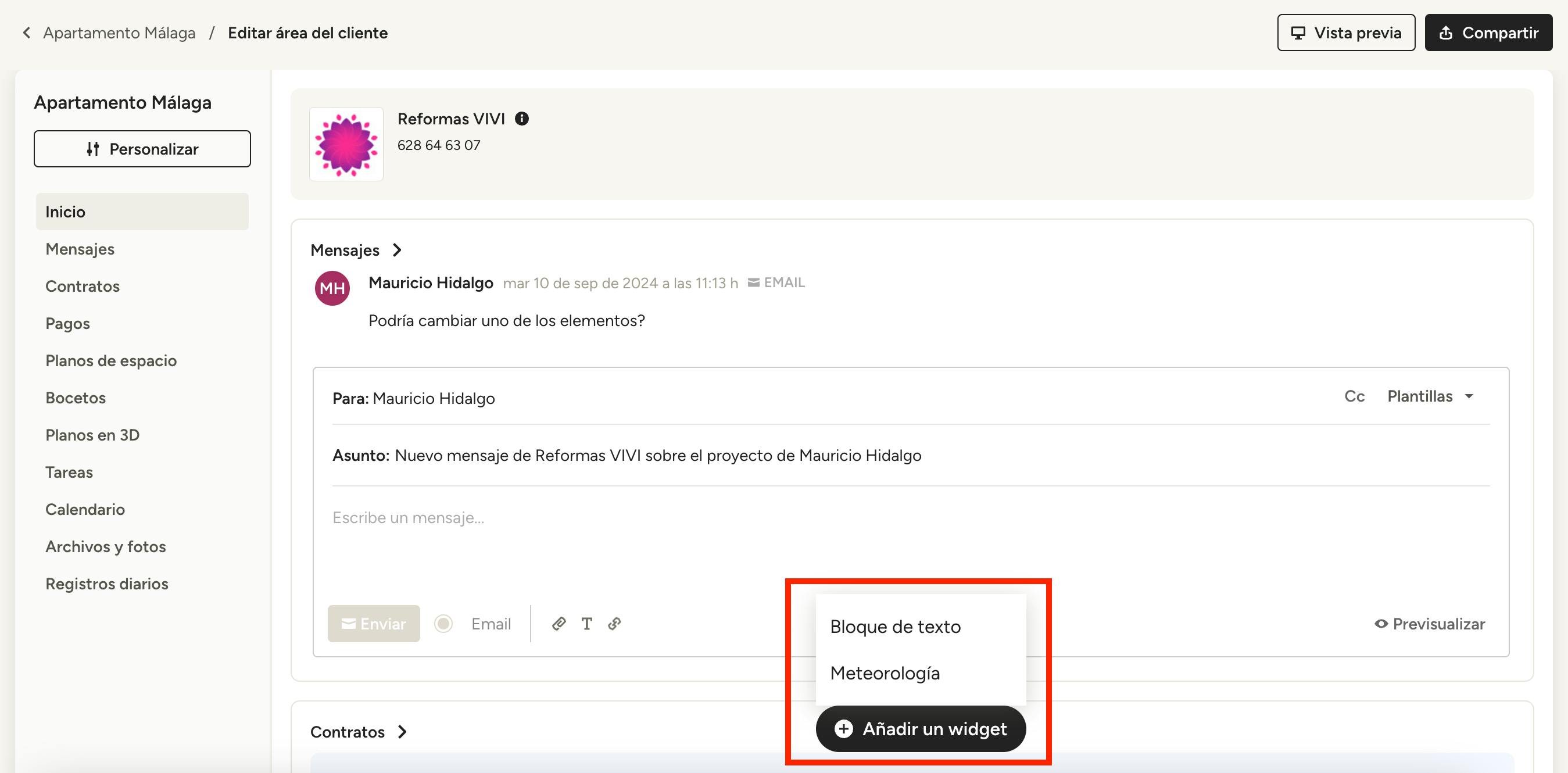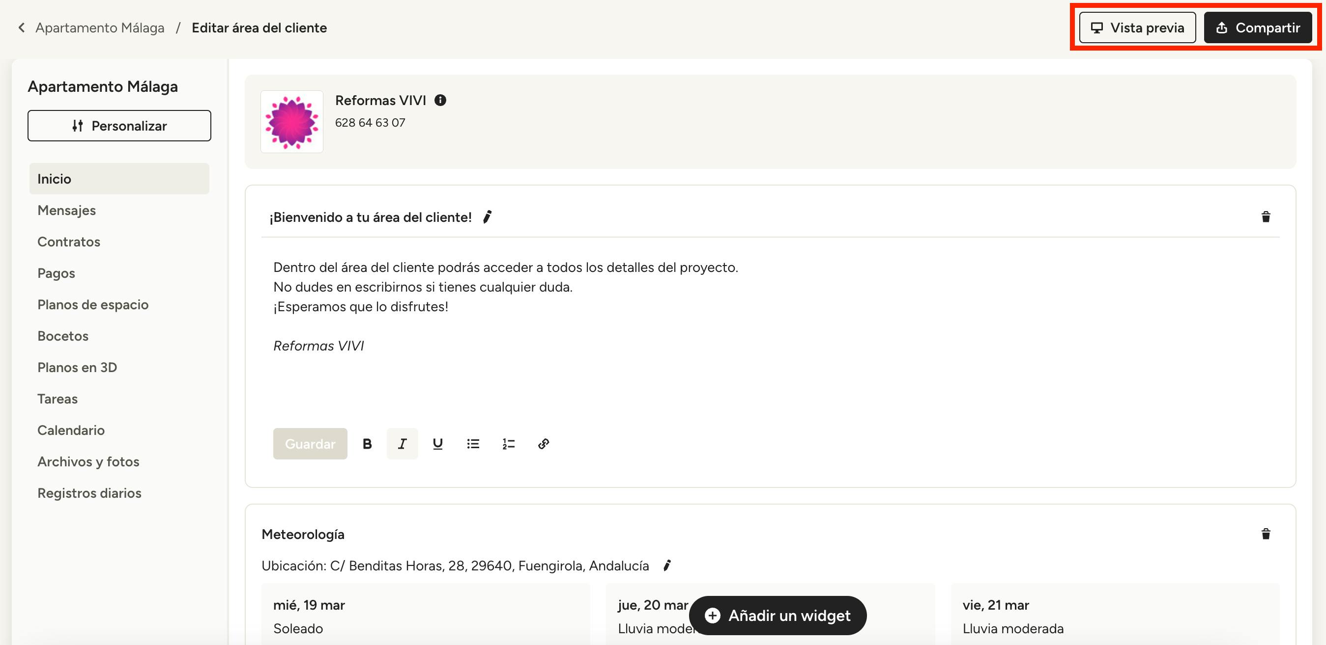 Si todo te parece correcto, ya lo puedes compartir con tu cliente. Para obtener más información sobre cómo hacerlo, consulta el artículo Cómo previsualizar y compartir el área del cliente.