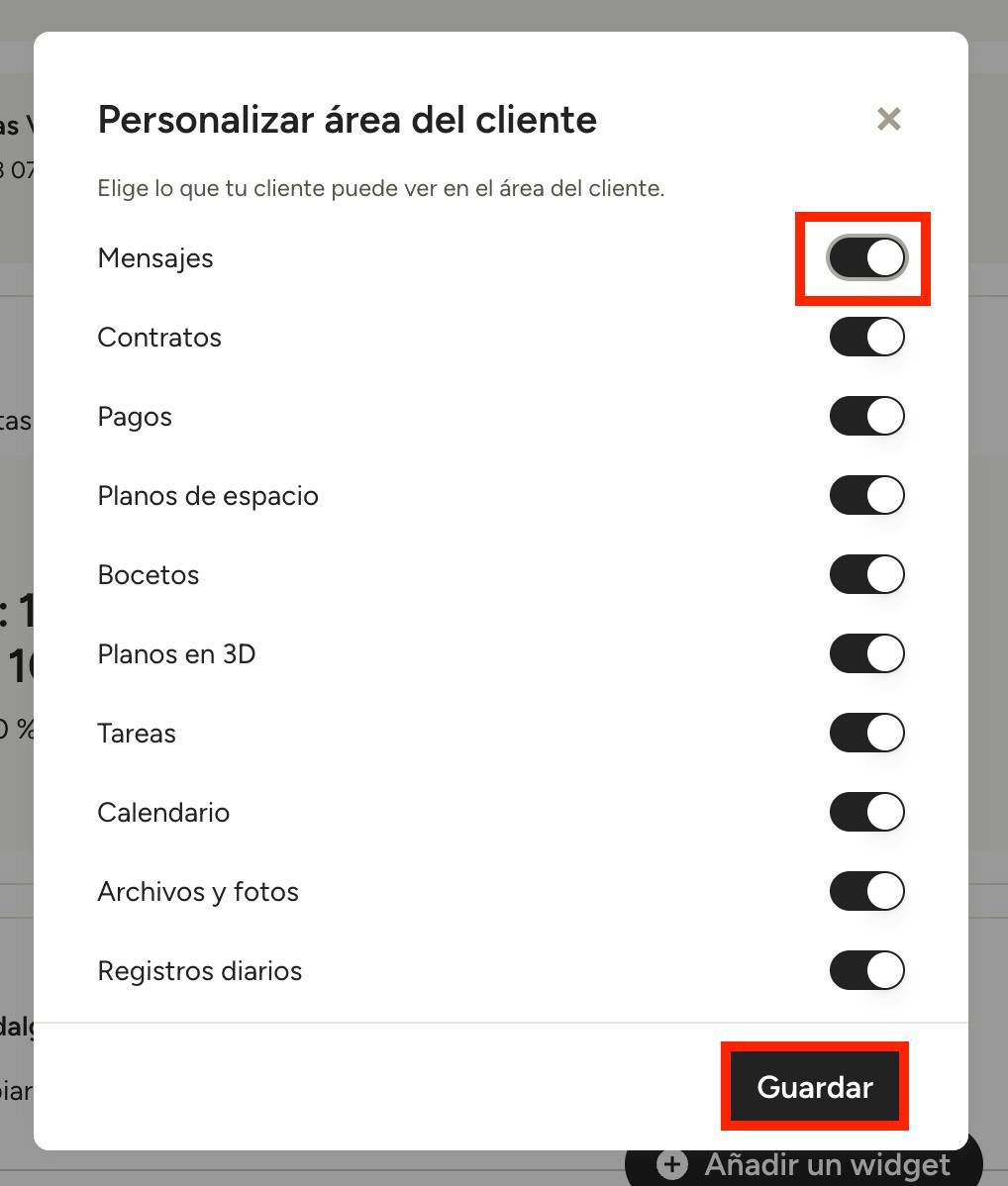 Si desactivas una opción, esa sección desaparecerá del menú izquierdo aunque hayas compartido el acceso con el cliente.