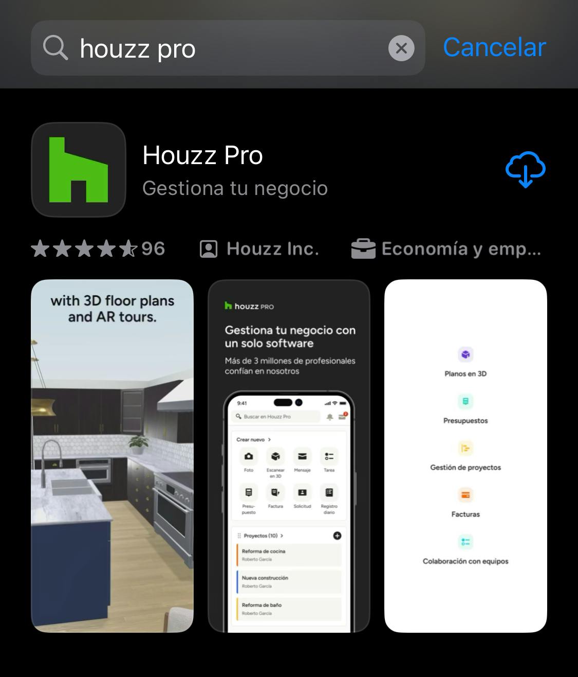 Descargar la app de Houzz Pro desde un dispositivo iOS