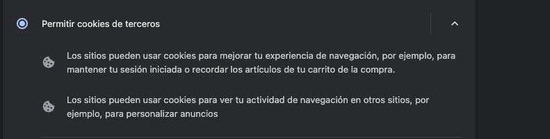 - Selecciona la opción "Permitir cookies de terceros".