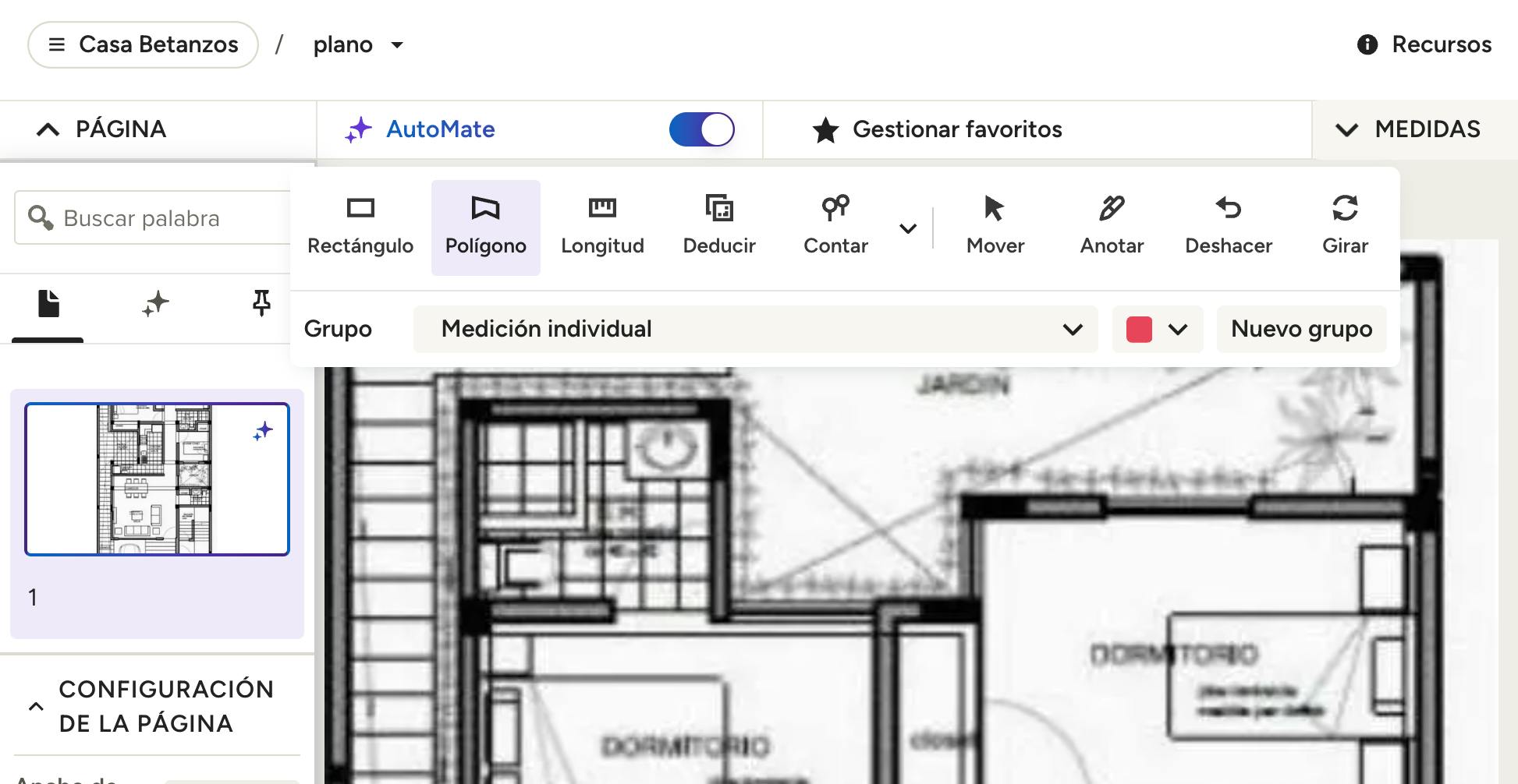 Solo puedes usar AutoMate en la herramienta de medición desde un ordenador. No todos los planos califican para AutoMate (solo planos de planta simplificados por ahora).