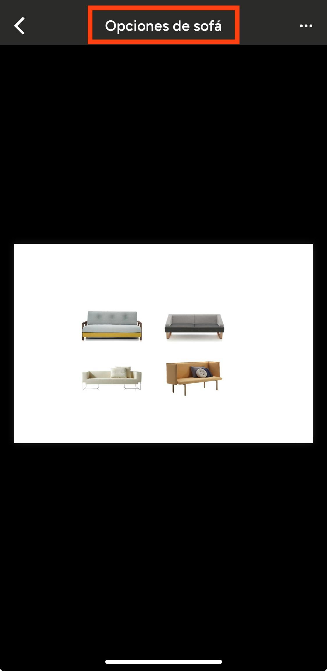 Cuando abras un boceto podrás cambiar a otro del mismo proyecto rápidamente a través del título que se encuentra arriba. Tócalo y se abrirá la sección Bocetos de este proyecto, donde puedes elegir el que quieras ver.