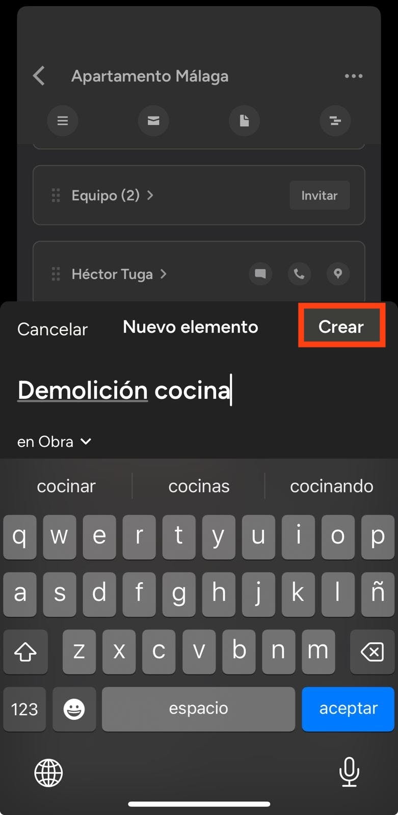 Si quieres crear un calendario nuevo para un proyecto, tienes la opción de hacerlo también desde la app.