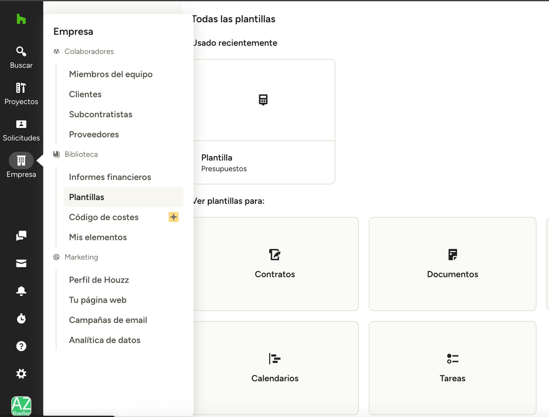 Para obtener más información sobre el Centro de plantillas, consulta el artículo ¿Dónde se encuentran las plantillas en Houzz Pro?