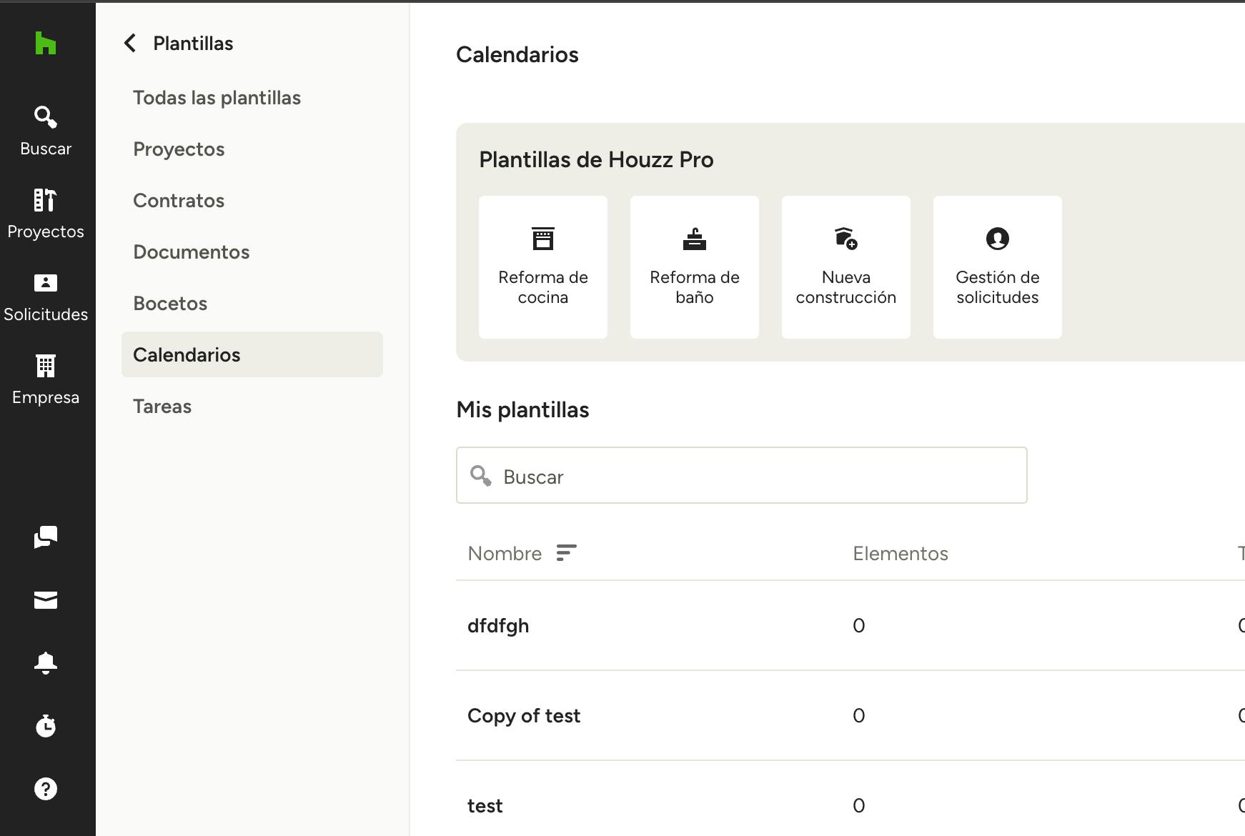 Para usar una plantilla, puedes optar por una de las predefinidas que tenemos en Houzz Pro o bien crear la tuya propia a partir de un calendario existente.
