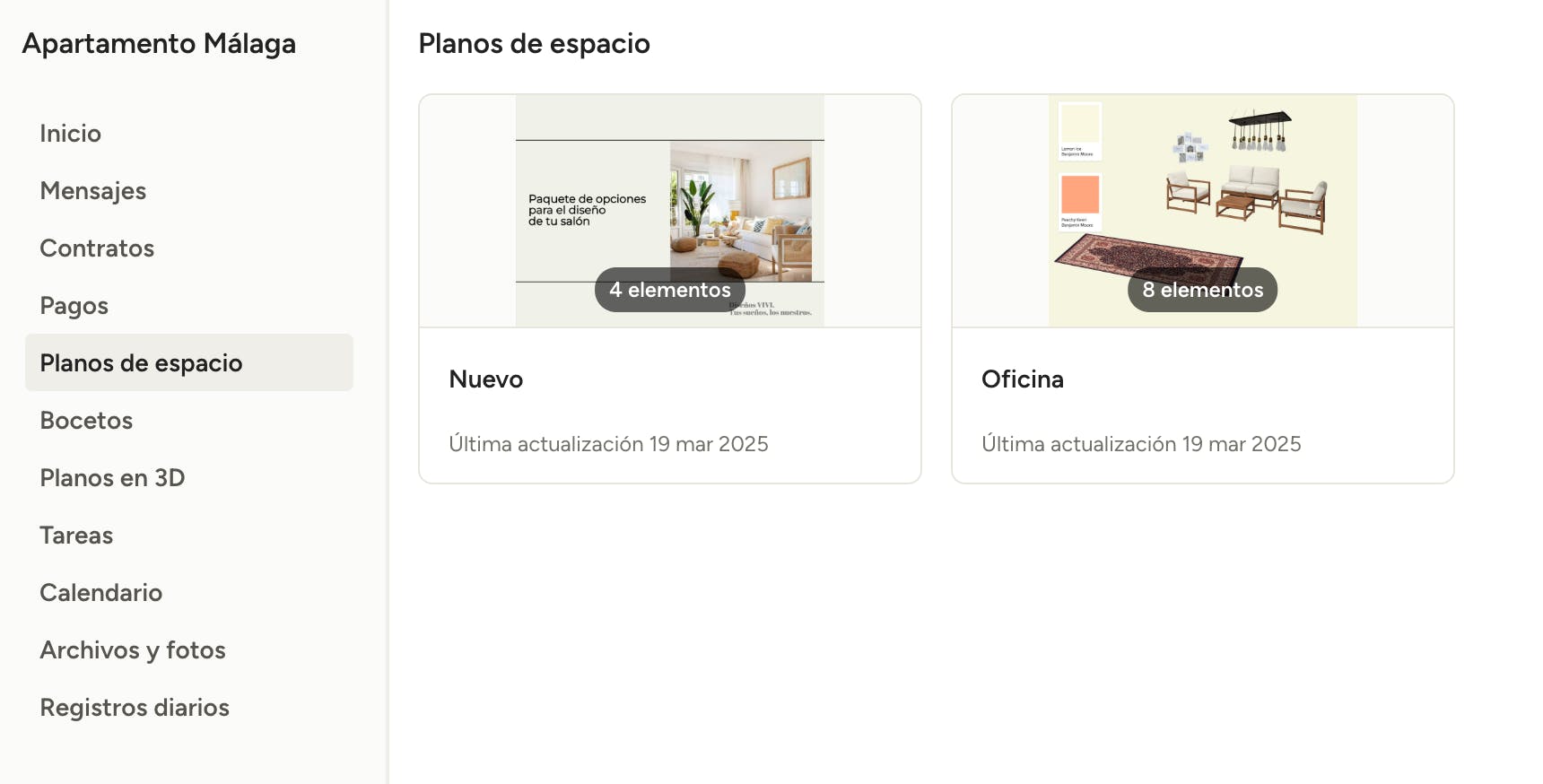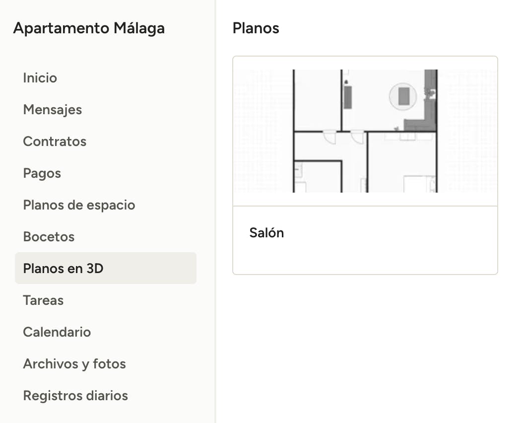 Cuando un profesional comparte un plano de espacio contigo, lo encontrarás en esta sección. Haz clic en el mismo para abrirlo.