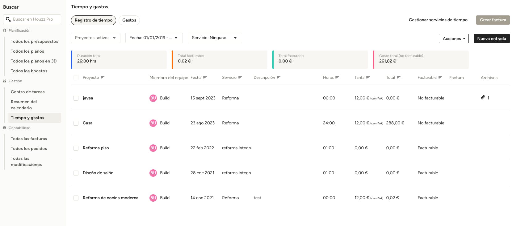 En la sección Tiempo y gastos de Houzz Pro, puedes gestionar tus tarifas de tiempo y gastos y servicios para los distintos miembros de tu equipo. Este artículo tratará sobre cómo crear, editar y gestionar entradas. Si necesitas ayuda para utilizar el cronómetro para controlar tu tiempo, lee este artículo.