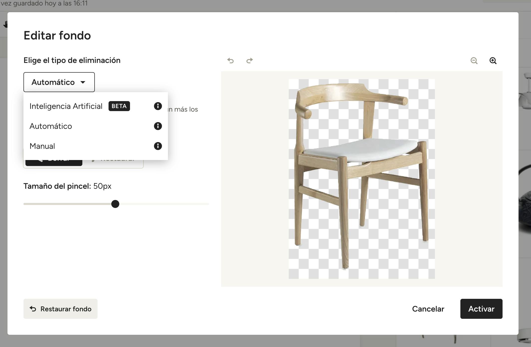 Si eliges uno IA o Básico, las ediciones se harán automáticamente. Si deseas ajustar más el fondo, puedes cambiar al modo Manual para seguir haciendo ediciones. Consulta más abajo los pasos para utilizar el método Manual.