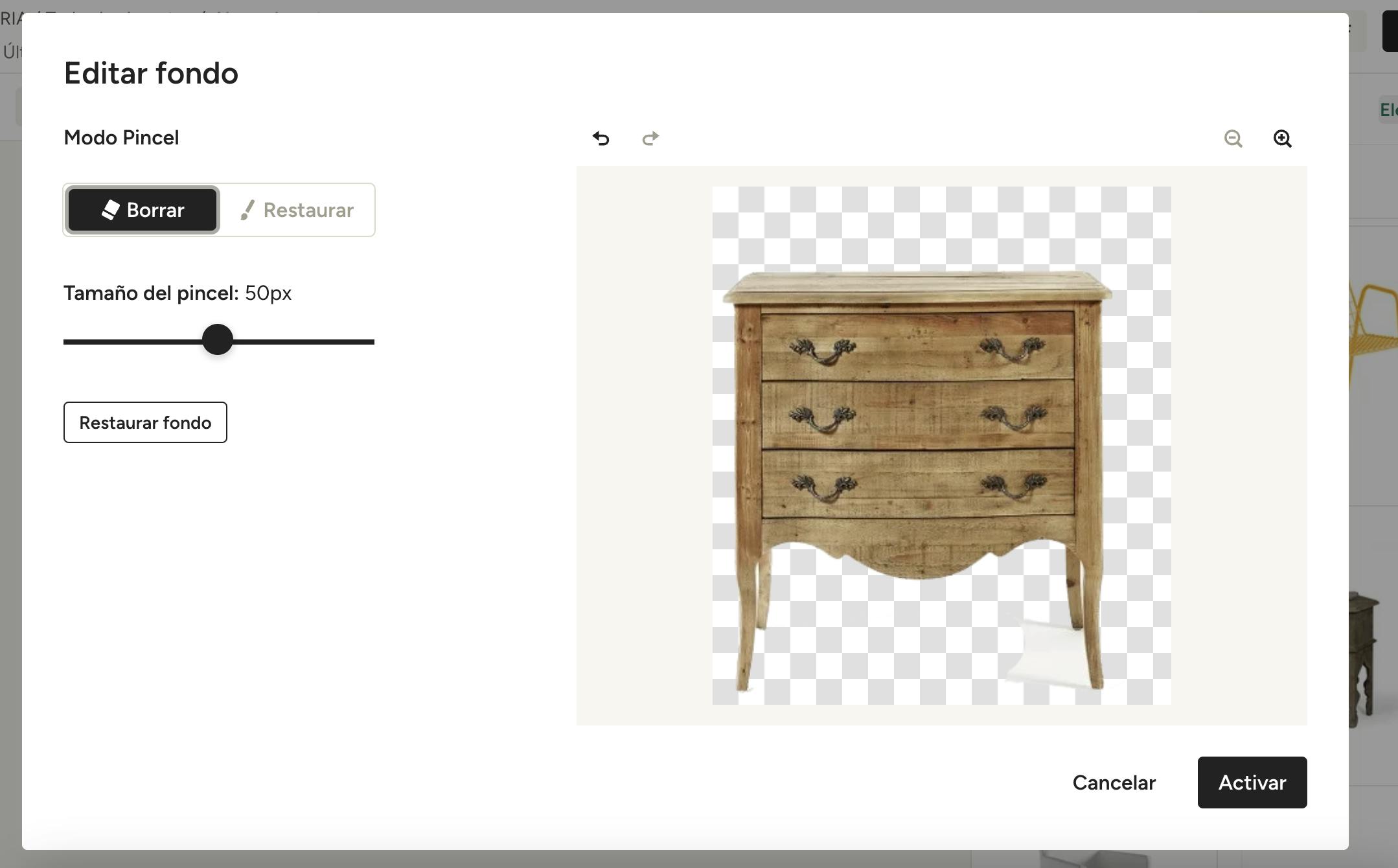 Eliminar el fondo recargado de una fotografía puede aumentar significativamente el impacto de tu imagen. Con el eliminador de fondo, básicamente puedes hacer que el fondo de la imagen sea transparente, de modo que la imagen no interfiera con nada más en tu tablón de anuncios. Esto te permite dirigir la atención de tu cliente hacia los productos reales, sin distracciones de fondo.