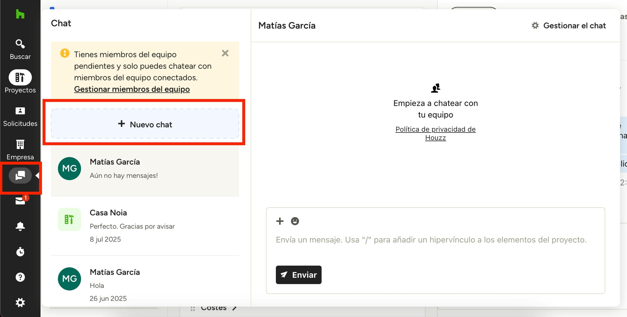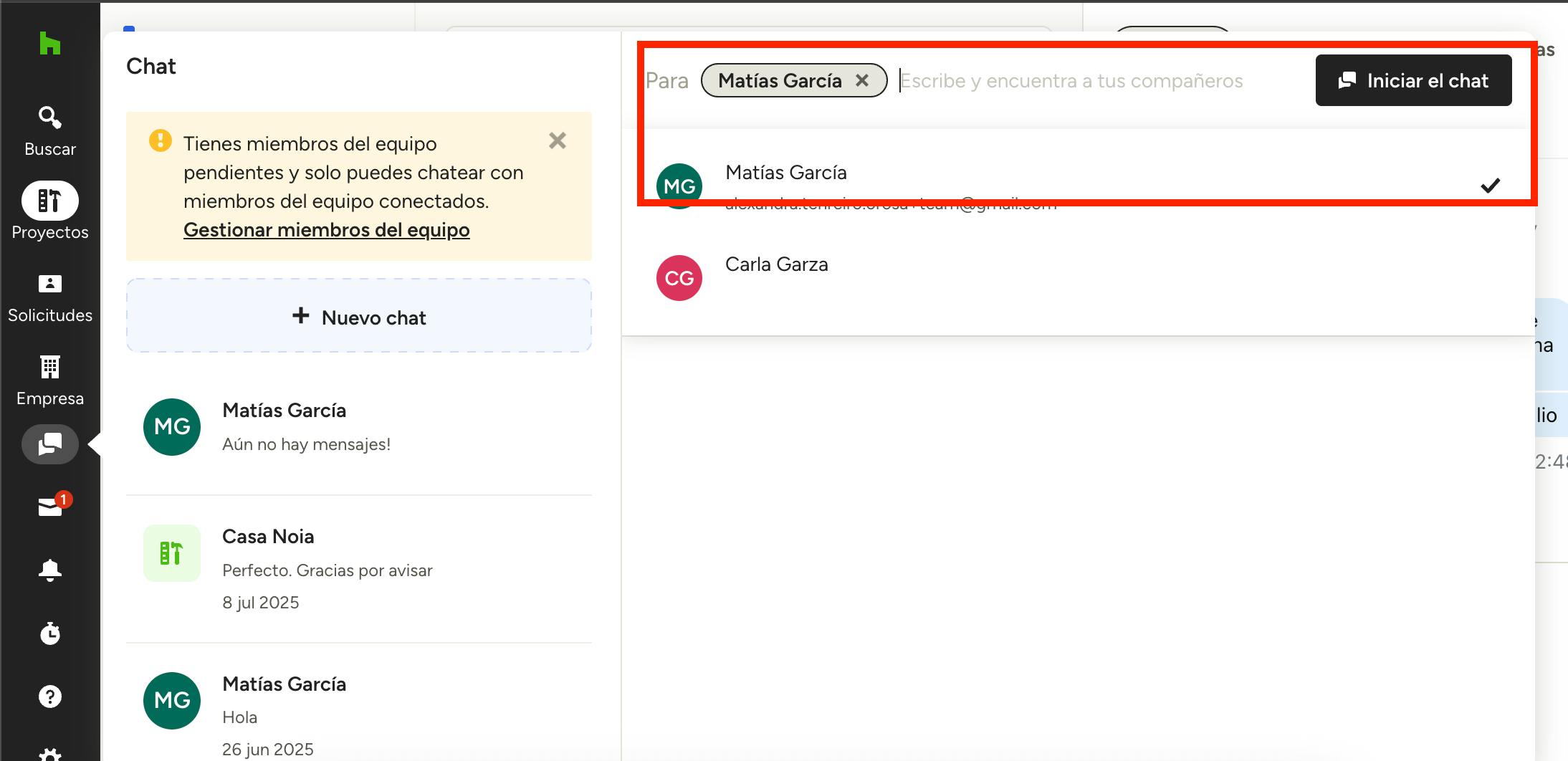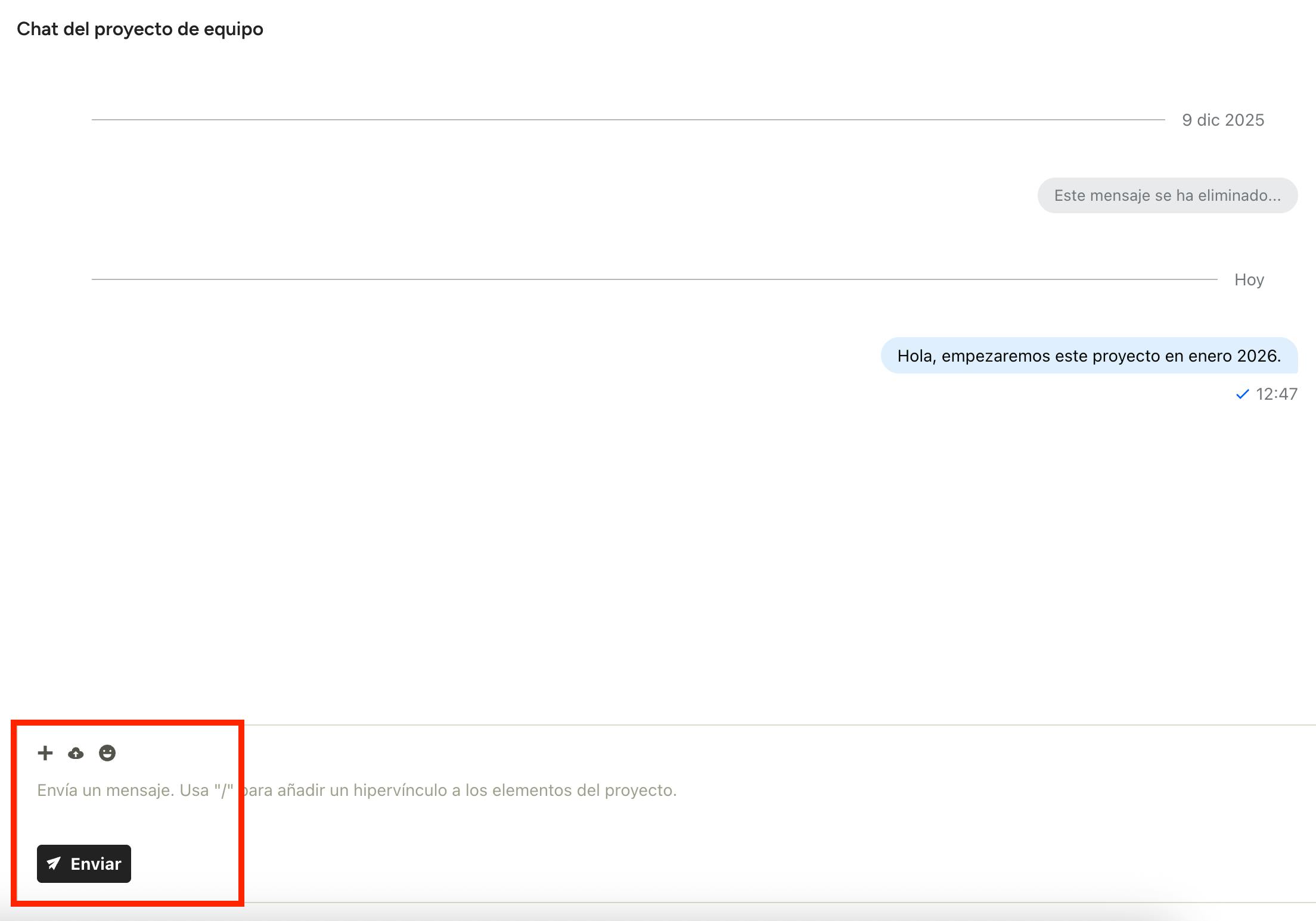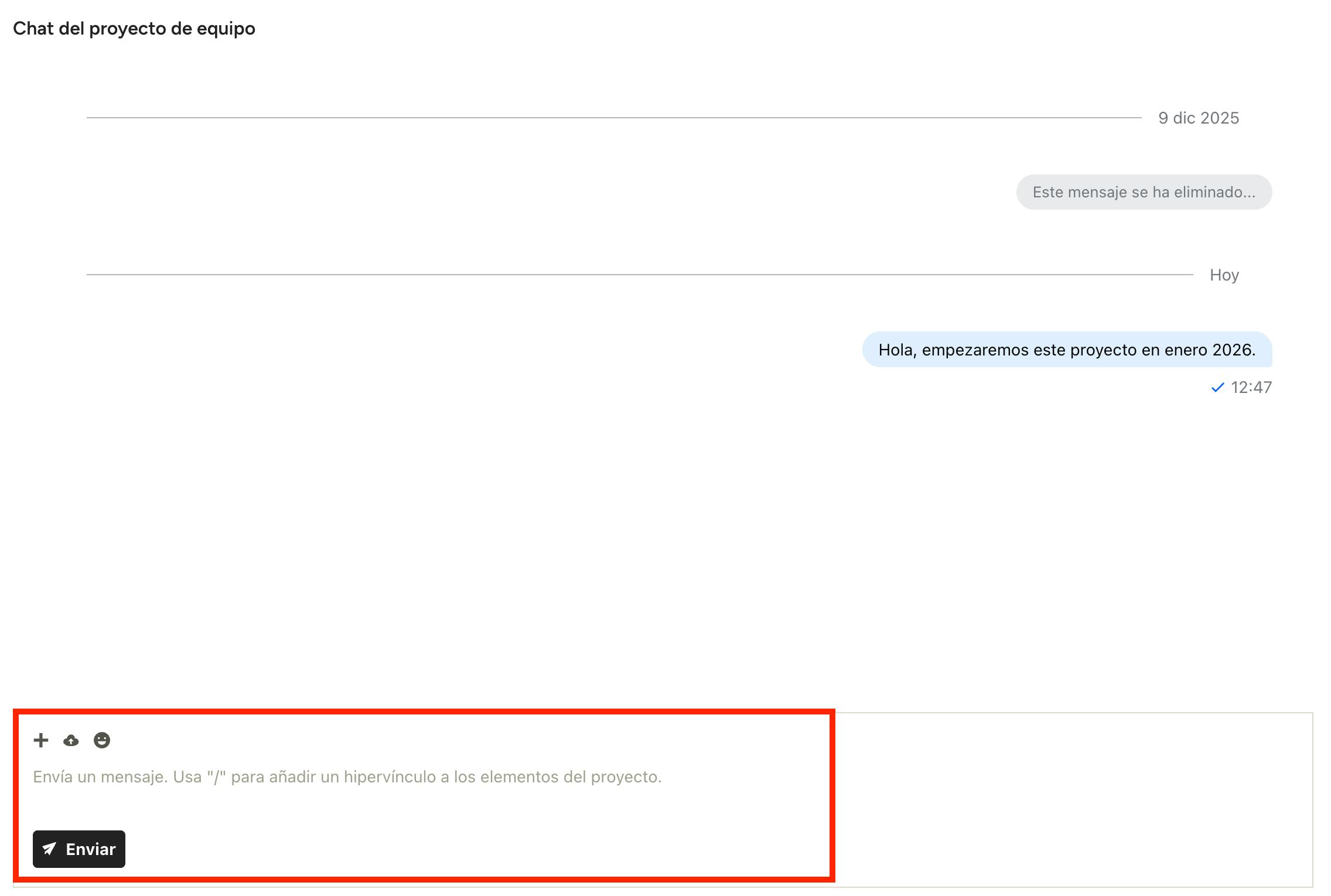 Nota: Solo los miembros del equipo tienen acceso al chat del equipo; los clientes y subcontratistas no podrán ver tus mensajes.
