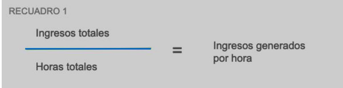Divide el total de euros por el total de horas trabajadas para obtener tus ingresos generados por hora utilizando el cuadro a continuación.