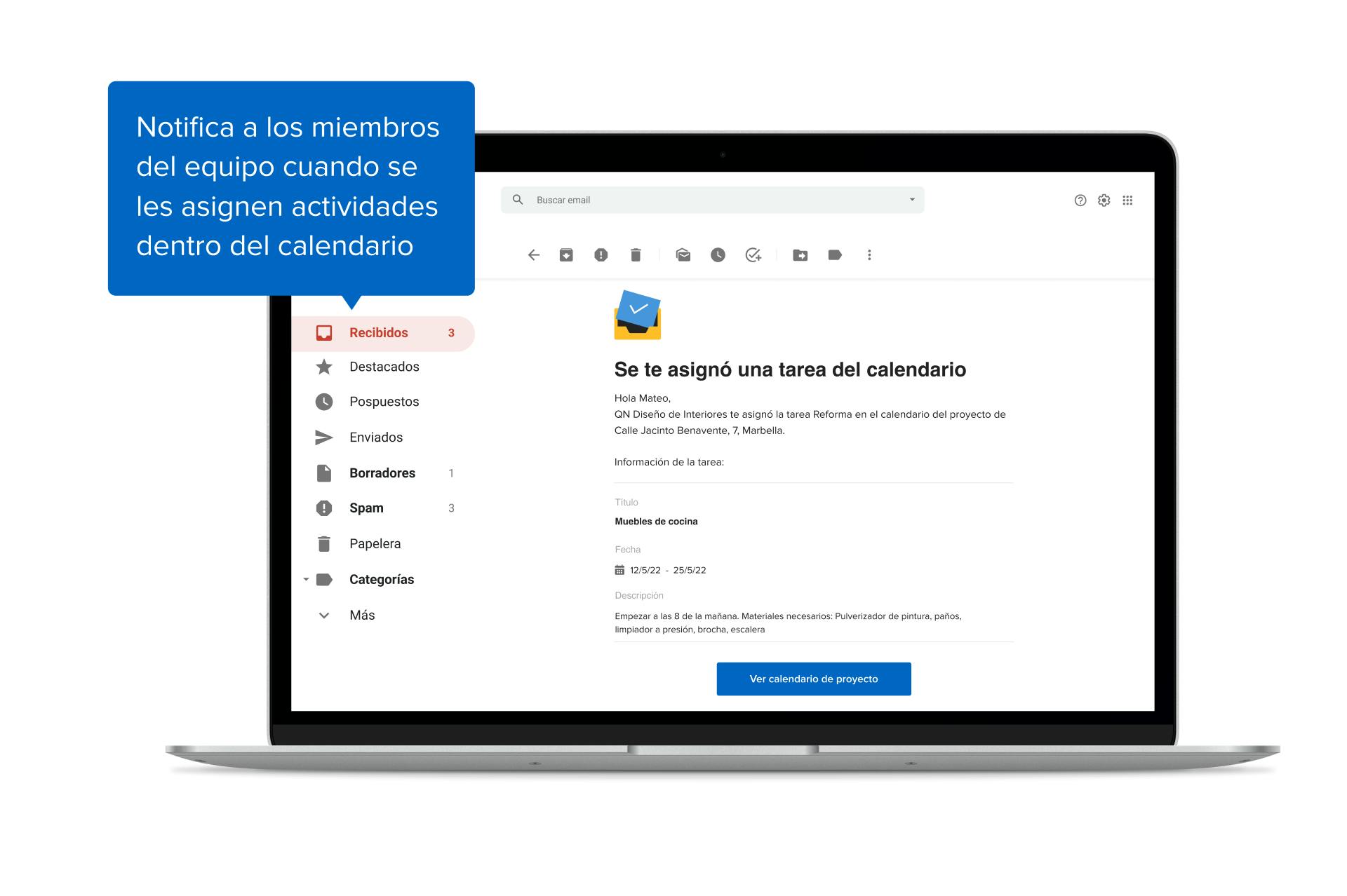 Los profesionales pueden compartir el calendario con sus clientes, los miembros de su equipo y los proveedores a través del panel de control del proyecto. De este modo, todo el mundo tiene una visión clara de la planificación, los plazos y las fechas de entrega, entre otros muchos aspectos. Por último, si hay que hacer cambios en el transcurso del proyecto, se pueden actualizar fácilmente las fechas pertinentes, asignar tareas a los miembros del equipo y añadir tareas nuevas.