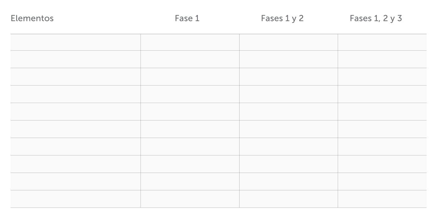 Tus paquetes deben ser lo suficientemente simples para que los clientes puedan ver el valor asociado con cada uno. Existen dos estrategias: crear niveles basados en las fases del trabajo o basados en el nivel de servicio que un cliente desea.